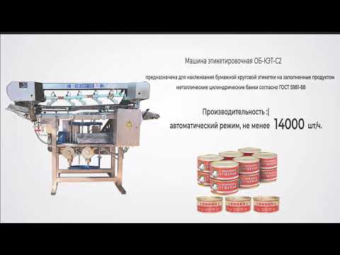 Этикетировочная машина марки ОБ-КЭТ-С2 предназначена для наклеивания бумажной круговой этикетки на заполненные продуктом металлические цилиндрические банки согласно ГОСТ 5981-88.